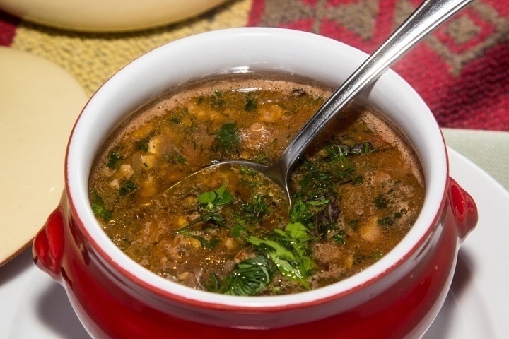 Шеф-повар ресторана «Гаянес» Тамара Гаранян поделилась рецептом вкусного армянского фасолевого супа – с добавлением кинзы и грецких орехов. Для того чтобы фасоль сварилась быстрее, ее можно предварительно замочить на несколько часов или даже на ночь. Фасолевый суп можно варить как на воде (постный вариант), так и на мясном бульоне.