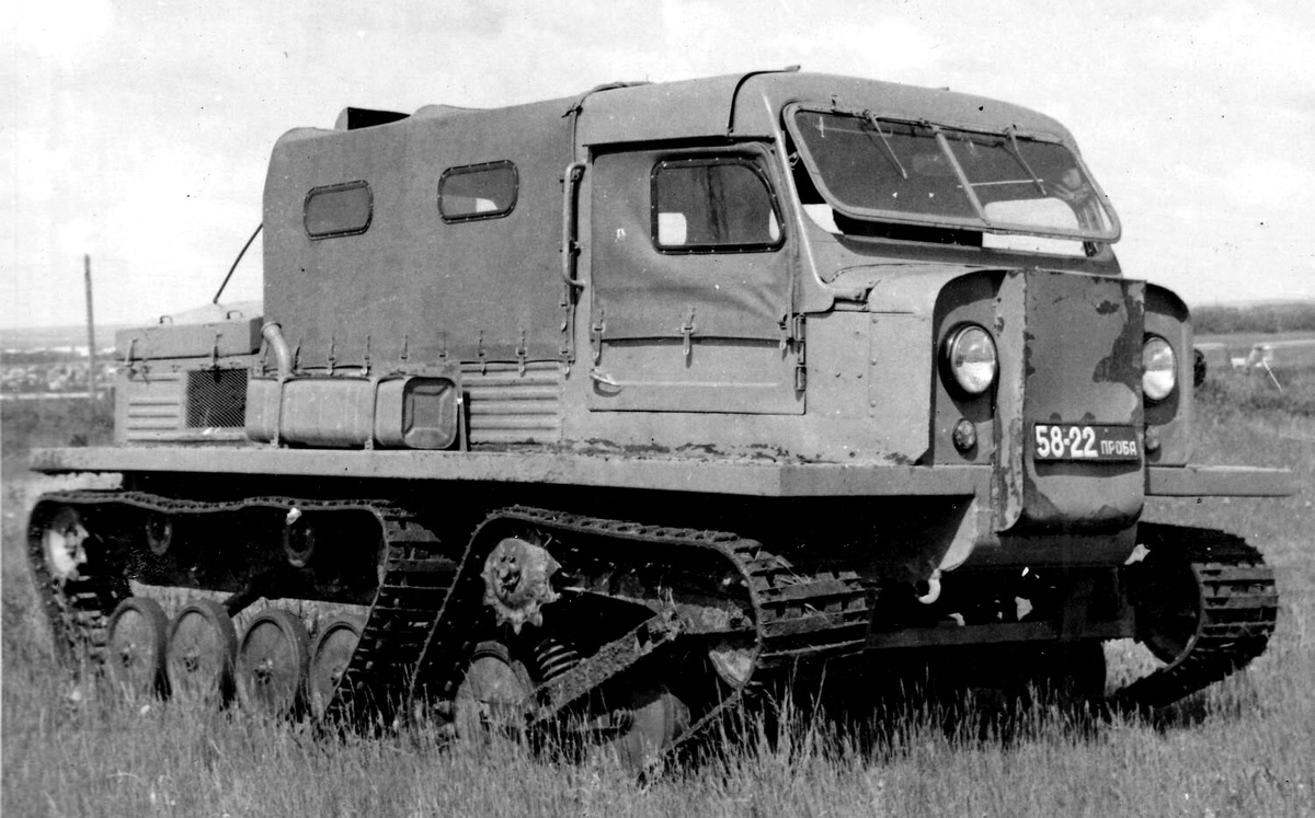 В 1965 году на Ульяновском автозаводе появился на свет четырехгусеничный плавающий вездеход УАЗ-490 , который построили для передвижения по тяжелому бездорожью. Сцепление, двигатель и коробка передач для УАЗ-490 были взяты от самой обычной «Буханки» УАЗ-452. Машина могла двигаться по заболоченной местности, преодолевать неширокие водные преграды, а зимой двигаться по снежной целине. Её характерной особенностью были расчлененные поворотные движители. Нестандартно был реализован принцип поворота гусеничной машины, - в отличии от большинства собратьев - машина использовала поворот передней пары в качестве разворачивающего усилия. Минусы такого решения, - невероятные усилия на руле (при такой длине пятна контакта выполнение поворотов требовало применение немалой физической силы). При движении по трассе машина нещадно грохотала, разбивала покрытие и даже рвала собственные гусеницы. Первый опытный образец был отправлен на испытания, которые он с "треском" провалил. По итогам заводских ис