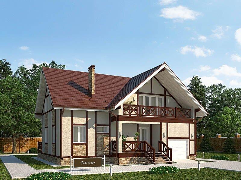 «Василек» — это приятный во всех отношениях коттедж с мансардой: эстетичный, функциональный и комфортабельный. Отделка фасада наполнена элементами стиля неофахверк: светлая фактурная штукатурка разбавлена деревянными балками. Пространство под окнами и цоколь декорированы диким камнем. Терраса, крыльцо и два балконы украшены деревянными перилами, поддерживающими общую стилистику. Справа от крыльца расположен гараж для одного автомобиля, органично вписанный в облик дома. «Василек» рассчитан на постоянное и комфортное проживание большой семьи, состоящей из 5-8 человек: на мансардном этаже расположены четыре просторных и уютных спальни и санузел. Первый этаж – зона размеренного досуга; здесь находятся кухня, кладовая, санузел и большая столовая-гостиная с выходом на террасу: именно здесь будет собираться вся семья, наслаждаясь обществом друг друга в приятной и расслабленной атмосфере. Площадь дома - 231 кв.м.
