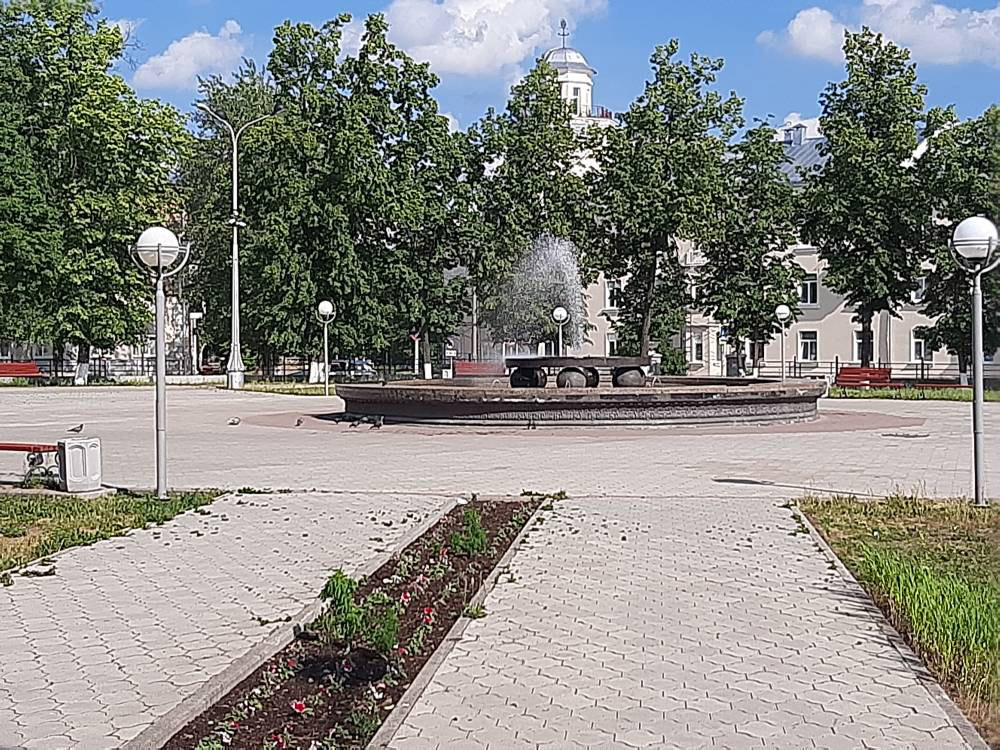 Далее наша экскурсия пролегала через сквер Бажова. Я уже говорил, что Краснокамск - город зелёный. На недостаток скверов и парков не пожалуешься. Один из них носит имя автора «Уральских сказов» Павла Петровича. Тогда ещё не сказочник, а журналист Бажов жил в Краснокамске в середине 1930-х годов, получив задание написать героическую книгу о пуске Краснокамского бумажного комбината.