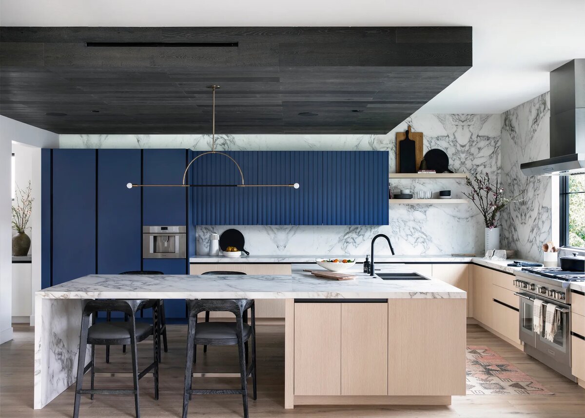 Темно-синие шкафы на кухне создают ощущение расслабленной роскоши и служат классической основой для любого стиля дизайна.