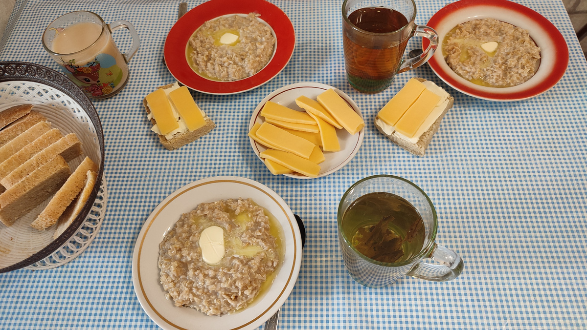 Всем приветик 🤗🤗🤗. У меня для вас есть ещё одно меню. И так, с чего же начался завтрак? В общем, разбирала шкафчик с крупами, а там у меня оказывается столько остатков 🤦♀️. Каши в коробочках по одному пакетику. Разное же варить не буду. Гречку на днях ели, манку тоже. Омлет постоянно. Что же приготовить, чтобы ели все? А приготовила я овсянку. Сынок до этого никогда не ел и не любил такую кашу. А вот недавно начал есть. Так же сделала бутерброды с маслом и сыром. Дочка сказала, что завтрак как в садике. Только там дают или хлеб с маслом, или хлеб с сыром 😄. Ну а у меня продолжается рубрика "разморозь холодильник". Достала три стейка свинины, разрезала на кусочки. Что же приготовить? Давно не ели плов. Но во время готовки, расхотелось его. Получилась рисовая каша с мясом. Очень даже вкусно. Просто во время готовки не захотелось добавлять приправу. А плов без приправы считается рисовой кашей с мясом. Вот так вот. Что то я немного устала, а ужин приготовить над