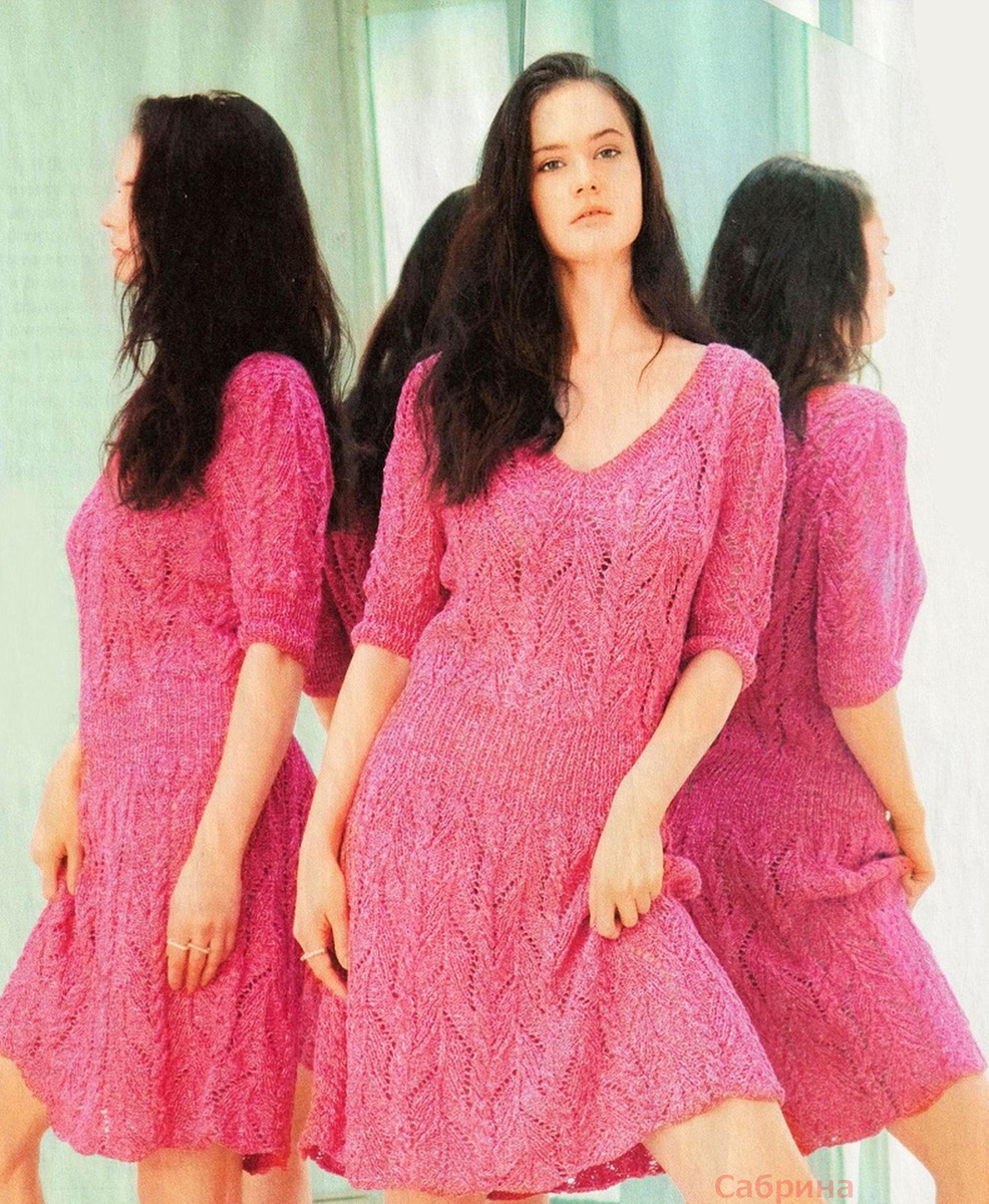 В розовых мечтах: кто не грезил о такой модели - с короткими цельновязаными рукавами и глубоким V-образным вырезом на спинке, который фиксируется тонкими завязками, чтобы края не сползали с плеч!