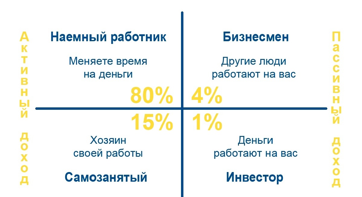 Кеш-флоу (Cashflow) Первая часть Об Авторе игры Cashflow (1) Об игре, её целях и задачах (2) Правила и механика игры (3) Вторая часть Задачи проводящего (4) Запись на игру и ссылки (5) Интересные моменты (6) Создатель игры Роберт Кийосаки - известный американский предприниматель, инвестор и автор множества книг по финансовой грамотности: «Богатый папа, бедный папа», где он дает советы по личным финансам и инвестированию, основанные на опыте общения со своим биологическим отцом (бедным папой) и отцом его друга (богатым папой). Еще одно знаменитое произведение Кийосаки - "Квадрант денежного потока", в котором он описывает четыре типа деятельности, которые приносят доход: Кийосаки утверждает, что истинная финансовая свобода достигается лишь тогда, когда большая часть доходов приходится на два последних квадранта - "бизнес" и "инвестиции", так как в этих случаях заработок не зависит непосредственно от вашего личного участия. (В левом квадранте находится 80-90% людей, которые получают 10-