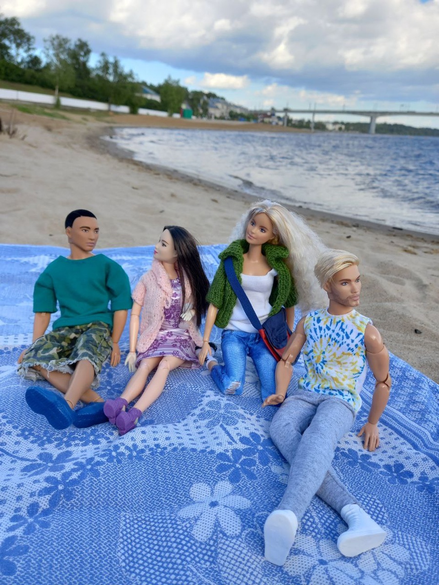 Взять на прогулку больше одной куклы - такое случается редко)) На эмоциональном подъёме от удачной гибридизации (Шон обрёл тело мтм, а Нурсултан - тело более подходящего скинтона) было решено устроить массовый кукло-выгул. Фотографий, достойных публикации, получилось немного, да и те не совпадают с первоначальным планом. Но всё равно выкладываю. На групповой фотке нравится поза Милли, и на этом всё. Ещё поняла, что не могу больше выносить выцветшие кисти Неко (наверно, поэтому вторую парочку не поснимала вообще). Следующим кукло-приобретением будет тело для неё. Забавно: штанишки обоих сливаются с пледом, а волосы - с песочком)) Неожиданно звездой съёмки стал Нурсултан. А что? он ведь тоже пережил апгдейд 😁 Эх, нет кармашка руку положить... ... зато футболка самая клёвая из имеющихся, ящитаю )) А вот тут он раскинул руки, но удались только портреты. Всё как всегда 😋 Обновлённый Шон соло. Когда-нибудь я научусь...🤔😎 Маечка колясочника шикарно сочетается с июньским небом и нашим