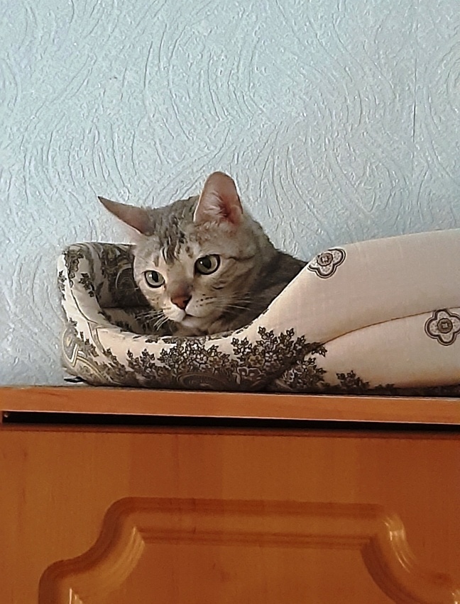 И вот её привезли к нам.Ребята, что тут началось! Цаца взрослая кошка, ей 7 лет, со сложным характером.Она ворчит на нас постоянно.А если к ней приблежаешься, она включает "сирену" и орёт на весь дом.Не, мы парни не трусливые, её не боимся, но чаще уходим на улицу или в другую комнтату.А когда Цаца поорёт и успокаивается, она ложится на шкаф в лежаночку и грустно смотрит на всех нас.Даже становится её очень жалко..