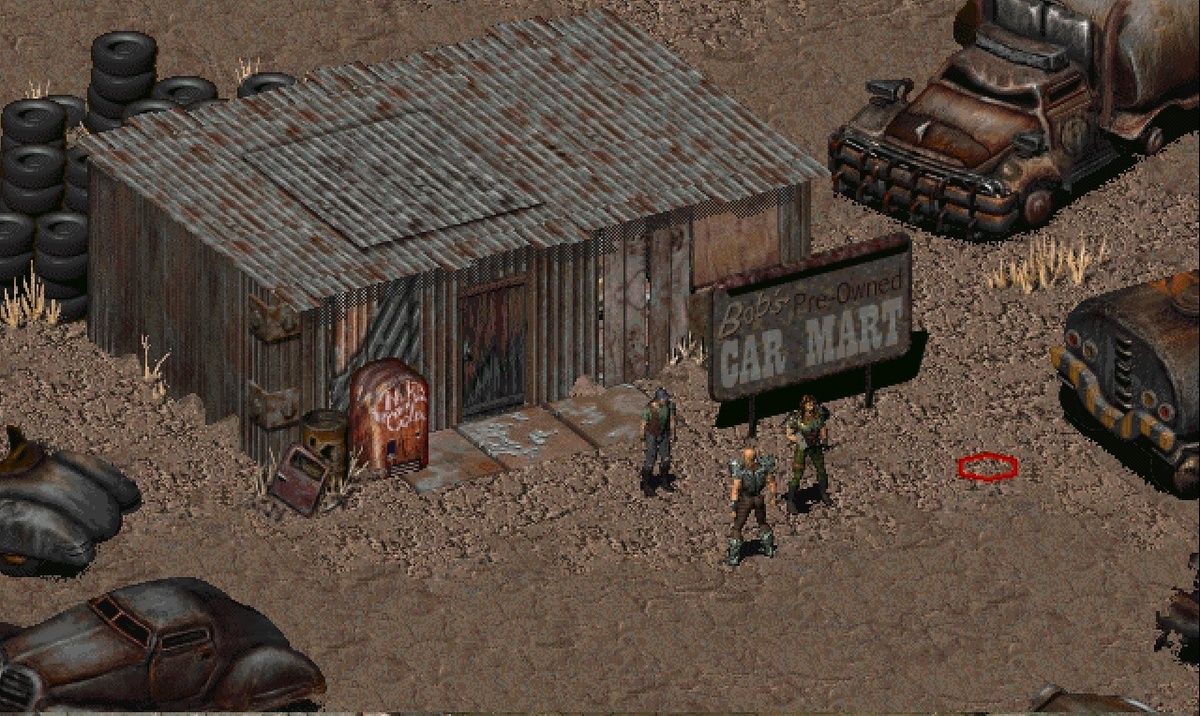 Друзьям пришлось сделать крюк, чтобы обойти группу налётчиков и тут они увидели интересное зрелище. Впереди покоились множество ржавых автомобилей от ретро до современных на ядерном двигателе в том числе грузовые и даже школьный автобус. Среди этой рухляди находился домик из досок и железных листов, а рядом большой рекламный биллборд. Надпись на этом щите гласила ”Магазин подержанных автомобилей Боба”. Тут же у биллборда стоял тощий, грязный, похожий на бродягу одетый в выцветшее тряпьё, видимо сам Боб. - Привет. Я боб! - поприветствовал новых клиентов мужчина весь перемазанный в машинном масле. - Привет! Добро пожаловать в мой салон подержанных автомобилей. Какая из этих красоток вас интересует? - обратился Боб к другому путнику не получив реакции от первого. - Ты что, шутишь? Это все сплошная рухлядь! - отреагировал Ян. - Сэр, это отличные автомобили. - возразил Боб. - Да, но они не ездят! - заметил Тайхо. - Все в порядке, ими сейчас занимаются наши мастера-ремонтники. - уверил их м