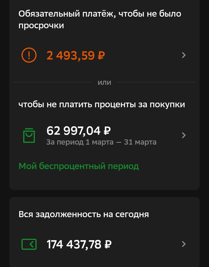 Приветствую вас на моем канале. Близится конец месяца, а значит пора платить по своим долгам. В частности по кредитной карте Сбера. По ней я должен до 30 июня заплатить 62 997 рублей. Именно столько мы потратили с нее за весь март. Напомню тогда у нас были долги за первоначальный взнос по ипотеке. А сейчас уже тот долг возвращен, и взят новый долг на ремонт. И то только на первую его часть. Так что заныривания в долговую яму продолжаются. Таким образом я решаю свои задачи, не платя банкам ни копейки процентов. Свободную наличность я храню на накопительном счете того же Сбера под 16% годовых. Там у меня было до оплаты чуть более 100 000 рублей. С этого счета я перекинул деньги сначала на обычную карту, а с нее перевел деньги на кредитку. Все, данный платеж погашен. На накопительном счете осталось всего 37 386 рублей. Сущие копейки, если учесть сколько я еще должен платить по своим долгам в ближайшем будущем. Хватит только на ближайший платеж по ипотеке 13 июля - 22 790 рублей. И возмож