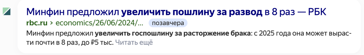 Ну действительно, 650 рублей за госпошлину о расторжении брака? Да на эти деньги даже в кафе не покушаешь. Это вообще не серьезно. Надо поднять цены! Видимо нечто подобное подумали в Минфине и предложили увеличить пошлину за развод в 8 раз, до 5 тысяч рублей. Мне стало очень любопытно, чем именно руководствовались в Министерстве когда решили так существенно повысить стоимость пошлины: желанием пополнить бюджет или попыткой отпугнуть будущих заявителей от расторжения брака(забота о семьях)? Поскольку речь идет о Министерстве финансов, то, надо полагать, что главной целью является пополнение бюджета. Видимо, огромное количество разводов в перспективе может серьезно увеличить приток денежных средств в бюджет, а следовательно такие предложения выглядят вполне логичными. В Росстате сообщили, что в 2023 году развелись 683 796 пар. Вот и сами посчитайте упущенную выгоду для бюджета. Получается, Минфину будет выгодно увеличение числа разводов в стране? Но тогда было бы логично поднимать цены и