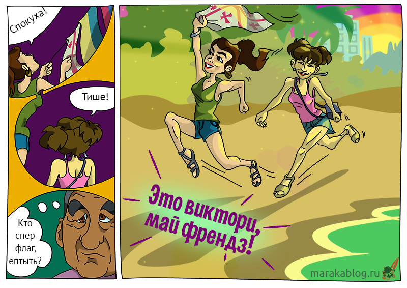 Я добралась до шпагата, привязанного к пальме. С ехидным смешком, по-детски злорадствуя, я отвязала веревку и стянула с нее флаг Грузии, а потом аккуратно закрепила шпагат. Как будто так и было.