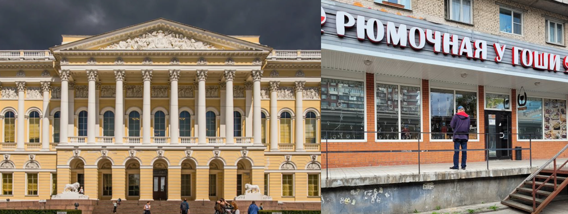 Классицизм. В классических рюмочных холодные закуски в основном уже готовые на витрине или в холодильнике, поэтому бутерброд с салом, колбасой или шпротами тебе не готовят, а просто перекладывают на тарелку. Из минусов - классическая рюмочная это такое место, где заходишь, чувствуешь, что-то запах не очень, а потом понимаешь, что это не в помещении пахнет, это пахнет от человека, который за тобой в очереди за стойку. Путь ресторанных обзоров тяжёл, но таков путь. Неоклассицизм - это было направление в архитектуре (за другие направления искусства не поясню), которое использовало средства художественной выразительности классицизма, но плевало на принципы их применения. Получалось по-разному. Знал одну рюмочную на Восстания, классическую такую, маленькую, не очень уютн