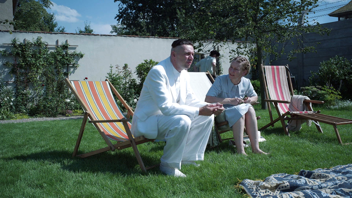 "Зона интересов" - этим словом в нацистских документах обозначали территорию вокруг концлагеря, в данном случае вокруг Освенцима. На этой территории и находится дом, где проживает с семьёй комендант лагеря Рудольф Хёсс. Проживает уютной бюргерской жизнью: гости, пикники, прогулки по реке, а главное - чудесный сад, который обустраивает жена коменданта - Хедвига, со смехом сообщающая матери, что муж её называет "королевой Освенцима". Хедвигу настолько выразительно, причём минимальными средствами, играет Сандра Хюллер (которая успела в тот год сняться сразу в двух фильмах-триумфаторах Канн, второй - "Анатомия падения", о которой уже был здесь разговор), что на её фоне как-то блёкнет сам комендант Хёсс (его сыграл Кристиан Фридель).