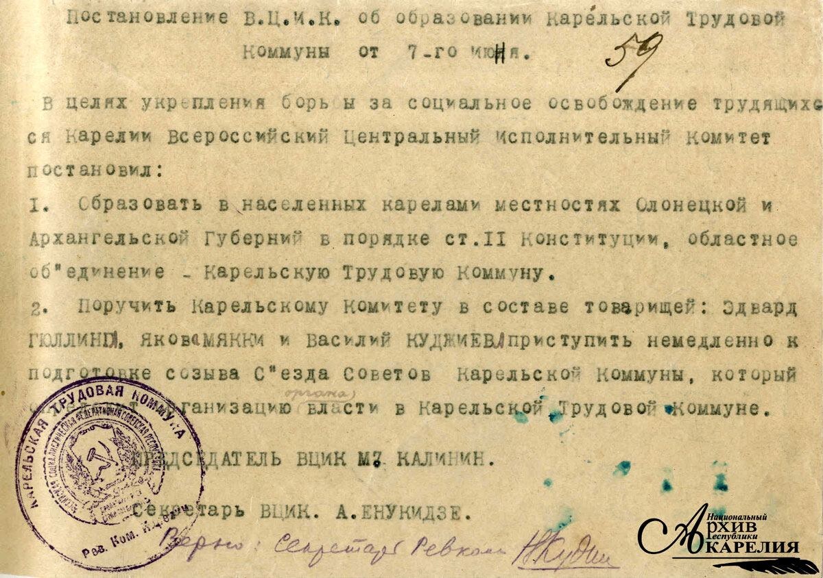 Это продолжение цикла статей о формировании границ Финляндии. Начало – здесь. После поражения в гражданской войне в Россию бежали тысячи красных финнов. Осенью 1919 года Эдвард Гюллинг, находившийся тогда в Швеции, направил Ленину «Предложение о Карельской коммуне». Новая автономия была образована летом 1920 г., как раз когда шли мирные переговоры с финнами: Именно она фигурирует в Тартуском договоре как «Восточно-Карельская автономная область». Карельская трудовая коммуна была создана из уездов Архангельской и Олонецкой губерний, причем до ликвидации последней Петрозаводск был столицей обеих административных единиц. Границы КТК не совпадали с этническими: по предложению Гюллинга, ставшего ее главой, в состав автономии из соображений экономической целесообразности включили русские волости: Их стало еще больше после того, как в 1922 Олонецкая губерния была упразднена: На момент образования карельской автономии в ней проживало 150 тысяч русских, 50 тысяч карел, 8,5 тысяч вепсов и 2,5 тыс