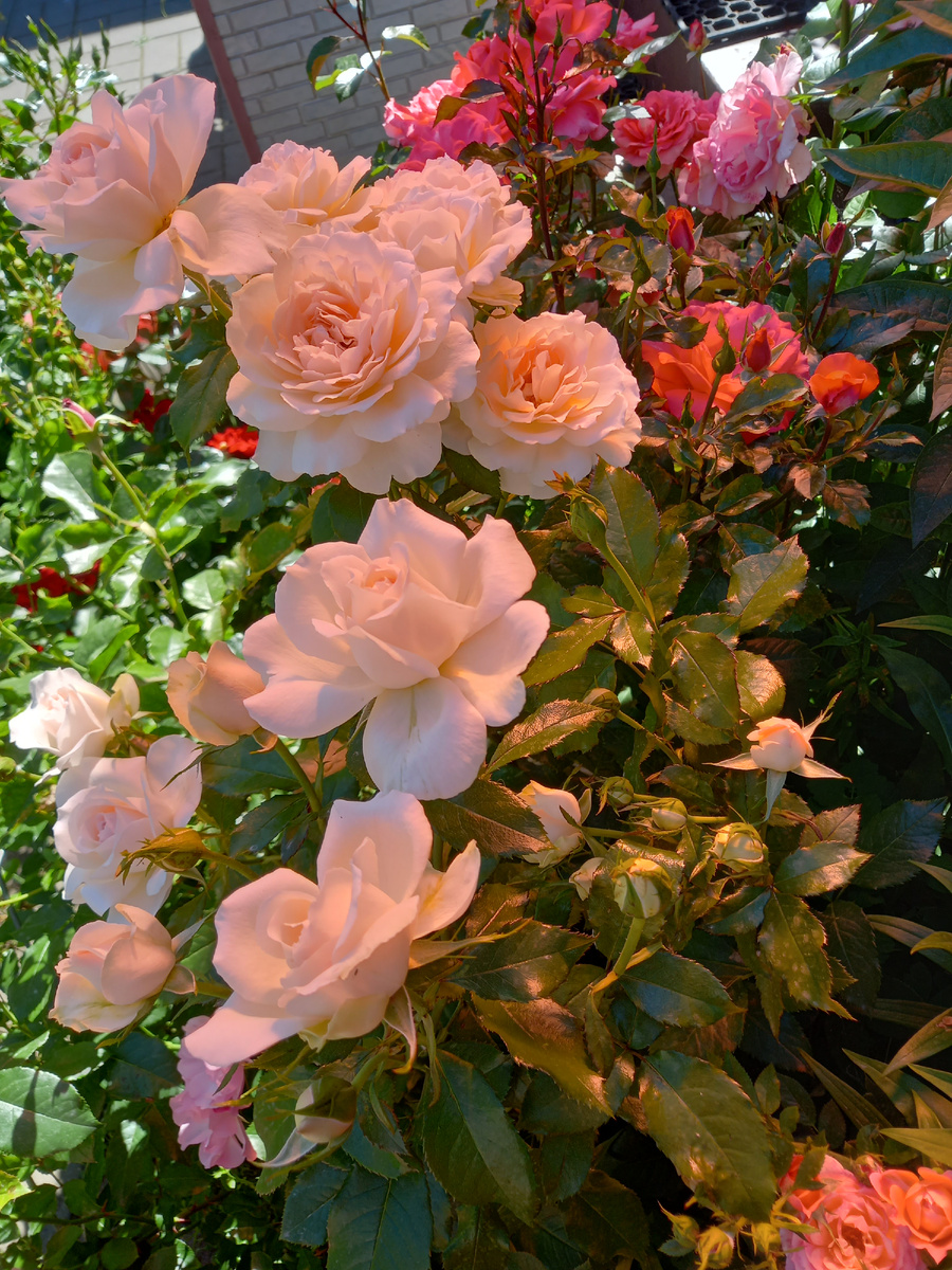 Жара, тля и клещики. Навалило всего и сразу. Проливные многодневные дожди в недалеком прошлом. Мой плач Ярославны по поводу массы, как мне казалось, непродуктивных побегов оказался зря. Из моей общей массы на конец июня проявились цветением пока что 157 кустов. Каждый день список увеличивается . Цветут все весной опечалившие. Чандос Бьюти из ниоткуда нагнала букетные побеги, а Фальстаф одиночниками радует, и Пьер де Ронсар с Ла Вилла Котта тоже красуются. Даже кажется, что розы компенсируют утраченное количество качеством. На Чандос были практически сплошные слепыши, резала и резала. В итоге пустая середина и четыре букетные ветки. Прошлые годы на ней было больше одиночных цветков. Пришлось куст связать, середина сплошь вырезана. На подрезанных побегах почки пока не проклевываются. К примеру, на Европеане после такого, как я резанула перезимовавший, но безбутонный побег, вид такой . Отросли три новые веточки и он уже с бутонами. Ла Вилла Котта тоже ничего себе. После резки