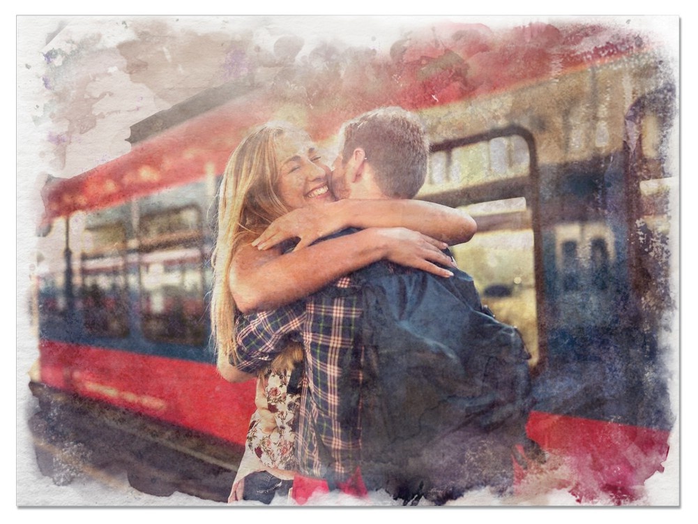 Шло время. Женя бежал к вокзалу. Он знал, на какой поезд садится Татьяна. Летел, спешил и… увидел её. Оказалось, что поезд задержался на полчаса, никто не знал настоящую причину. Неожиданно Таня улыбнулась, а Женя с тортом стал перед ней на колени: