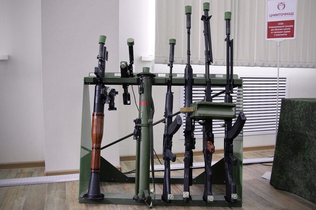 Продукция Центрального научно-исследовательского института точного машиностроения предназначена для индивидуальной стрелковой подготовки военнослужащих и курсантов военных высших учебных заведений. Фото: Концерн «Калашников». Тренажерный комплекс оснащен массогабаритными макетами автомата АК74М, снайперской винтовки СВД, ручных пулеметов РПК74Н1 и ПКМ (6П41 «Печенег»), гранатометов РПГ-7В1, РПГ-26, ГП-25. В составе учебно-стрелкового тренажера применяется мишенный экран, оптический модуль с лазерным импульсом, акустическая система, специализированная программа интерактивной огневой подготовки.