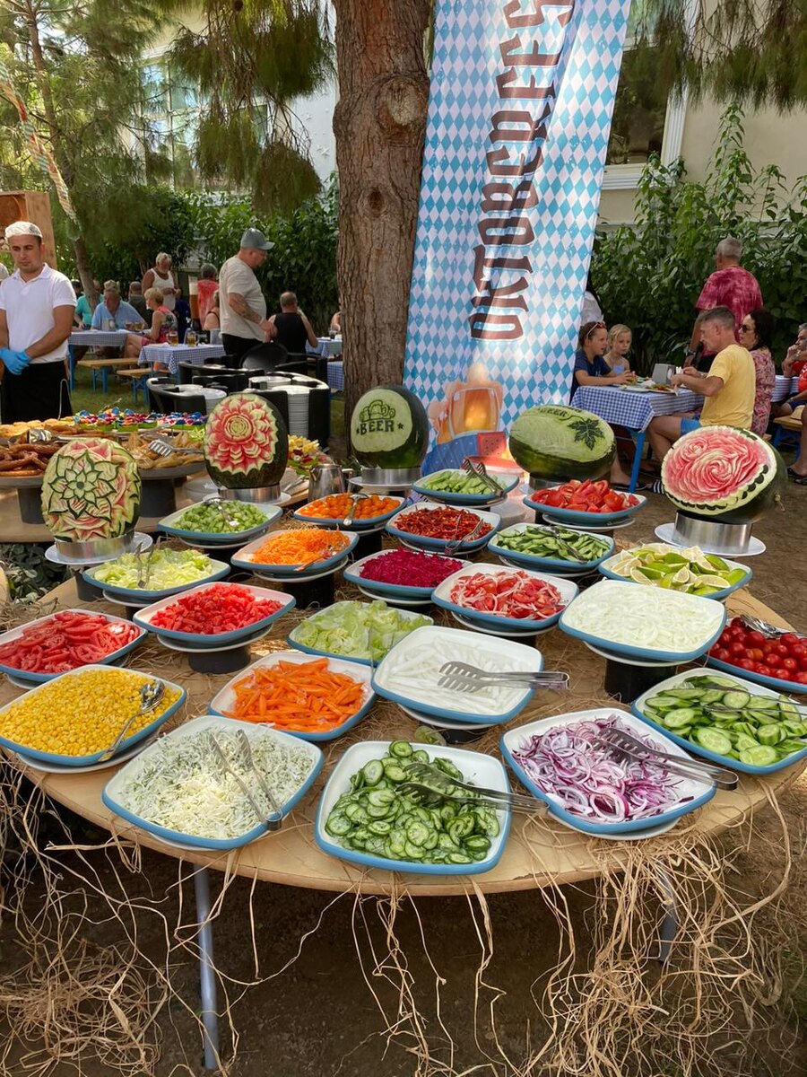 Поражаюсь свойствам желудка вмещать невмещаемое. Сколько раз говорила себе: "Ну не набирай ты столько". Но нет, как вижу это изобилие еды, не могу остановиться, будто год сидела на воде и хлебе. И ведь это с утра до ночи. Но ладно бы одна я недоедающая. Нет, там большинство таких. Двери не успевают открыться, а очередь уже на нижнем старте готова штурмовать столовую. Будто еда может закончиться, и все пойдут спать голодными. Вот что это? Наш русский менталитет или это обилие еды не даёт расслабиться. И я не исключение, набираю, набираю, набираю, а потом рука не поднимается выкинуть все это изобилие. Как-то раз в Камбодже нам сказали, что страна бедная, если не доедите ужин, то придется заплатить штраф. Ну кому охота расставаться со своими кровными, конечно, все съели. Умеем же, когда надо. Но что же творится в Турции? Почему мозг перестает дружить с желудком... Потом эта курица, рыба, картошка, макароны, рис и сверху ещё арбуз с дыней, как в помойном ведре, бултыхаются в тесном союзе