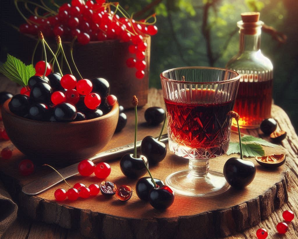 Эта настойка отлично подойдет к десертам и будет идеальна в качестве дижестива. Она сочетает вишню и черную смородину, создавая богатый и ароматный напиток.