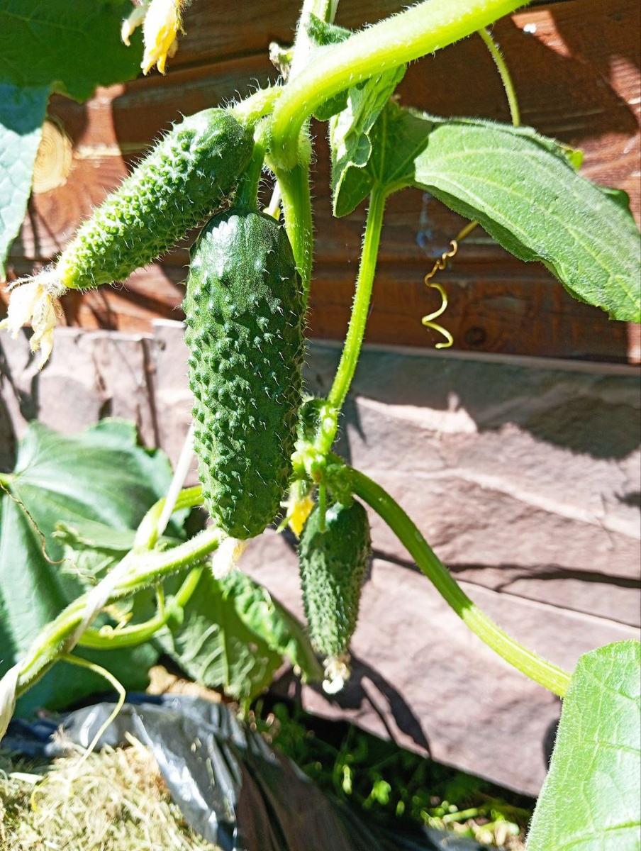 Всем здравствуйте! Июнь близится к своему завершению, на улице 30-градусная жара, а я решила рассказать о своём огороде, для тех, кому цветы не очень интересны. Те, кто со мной давно, знают, что овощей я много не выращиваю, плантаций помидор, огурцов и прочих овощных культур у меня нет. Все культуры буквально поштучно, чисто поесть, в приоритете цветы. Но тем не менее… Сегодня собрала первый урожай огурцов. Урожай, конечно, громко сказано, первые пять штук будет точнее) 😂 Огурцы уже не первый год выращиваю в мешках и такой способ мне очень нравится. В этом году посадила 4 куста сорта Хрустящая грядка, но один из них недавно случайно выдрала. Сейчас в срочном порядке подращиваю ему замену какого-то балконного, не помню, как называется. Этого количества мне вполне хватает и поесть и баночки закрыть. Помидор у меня 5 кустов разных сортов, все низкорослые, поскольку всё выращиваю на улице, теплицы у меня нет. Первые помидорки, пока ещё совсем маленькие появились на балконном сорте Сахарн