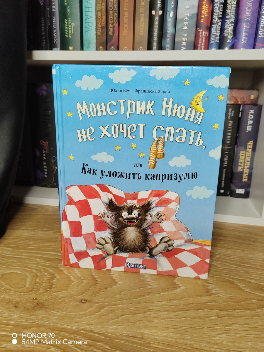 Всем привет с вами снова мама-кошка и сегодня у нас на разборе очередное произведение литературы. Есть у меня одна очаровательная книга с забавными персонажами... Случайно увидела в фикс прайс пару лет назад и меня очень привлекло название, я и подумать не могла, что книга окажется одной из любимейших историй моей старшей дочери (младшая ещё не прониклась ею). История рассказывает про шкодливого монстрика Нюню, который пришёл к мальчику Кузе в очень плохом настроении,и даже придумал ему причину, «его никто не укладывает спать!» И вот Кузя начинает помогать Нюне заснуть. То зубы почистят, то песенку споют, то монстрик решит, что хочет спать с грязным носком! Не правда ли, напоминает наших детей, которые ни в какую не хотят ложится вовремя? Забавная история, запоминающиеся персонажи и красивые иллюстрации не дают заскучать юному читателю, а если с ним обсудить, как нужно вести себя перед сном, то ребёнок поймёт, что не хочет быть как Нюня и с радостью укладывается спать спокойно (правд