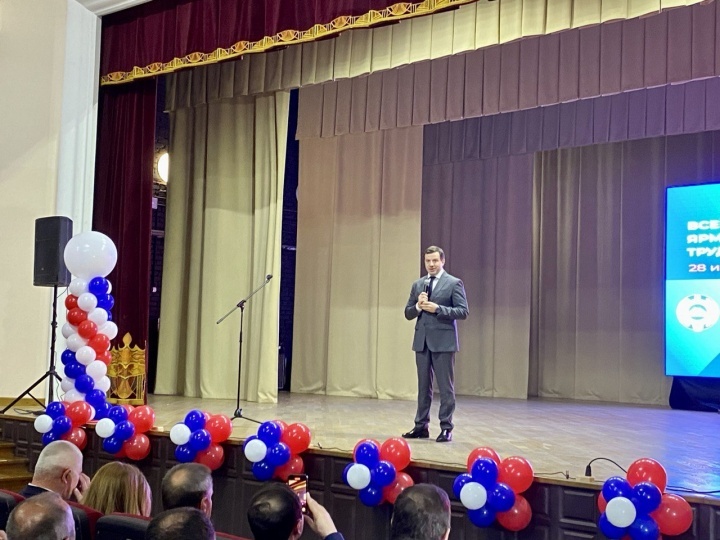 Сегодня во Дворце культуры города Черкесска проходит федеральный этап Всероссийской ярмарки трудоустройства. В ходе торжественного открытия участников и гостей ярмарки поприветствовали Заместитель полномочного представителя Президента РФ в СКФО Владимир Надыкто и Председатель Правительства КЧР Мурат Аргунов. «Отрадно видеть такое большое число молодых людей сегодня в зале. Это показывает их большую заинтересованность в сегодняшнем мероприятии и, конечно же, желание сделать правильный выбор в своей жизни. Вы только начинаете свой жизненный путь, и от того, насколько будет вам интересно, комфортно, вы и дальше будете расти и развиваться, а вместе с вами будет развиваться Карачаево-Черкесия и целом наша Россия. Желаю сделать правильный выбор! А тем, кто не первый раз выбирает профессию, хочу пожелать, чтобы выбор новой профессии стал именно тем стимулом, который позволит и дальнейшим реализовать свои задумки, мысли, планы. В добрый путь. Желаю всем здоровья и процветания Карачаево-Черкесс