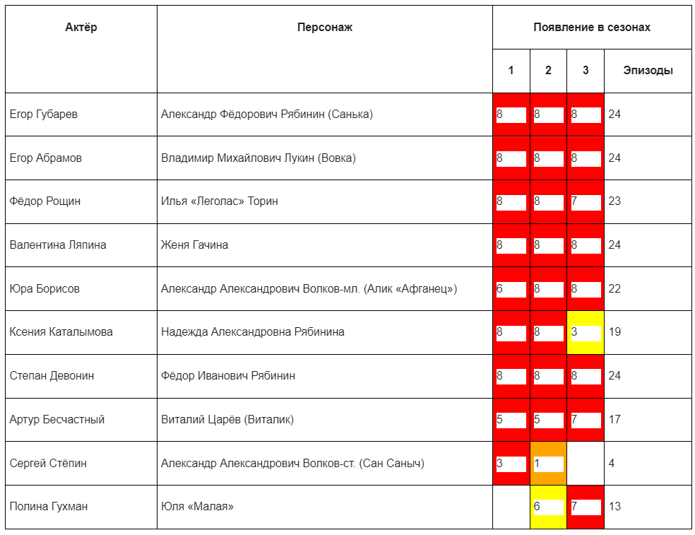 Сезон заканчивается тем, что Алик приезжает на базу афганцев, где уже работают сотрудники милиции и скорой помощи. Простынями накрыты тела бывших друзей Алика. Он замечает вдалеке Витю. Они молча смотрят друг на друга. Семья Рябининых в пустой квартире, Гена даёт им время на сборы. Санька спрашивает, где они теперь будут жить, никто не может ему ответить. Алик поехал один мстить Бесо, но позже встречает Витьку, который помогает ему.
