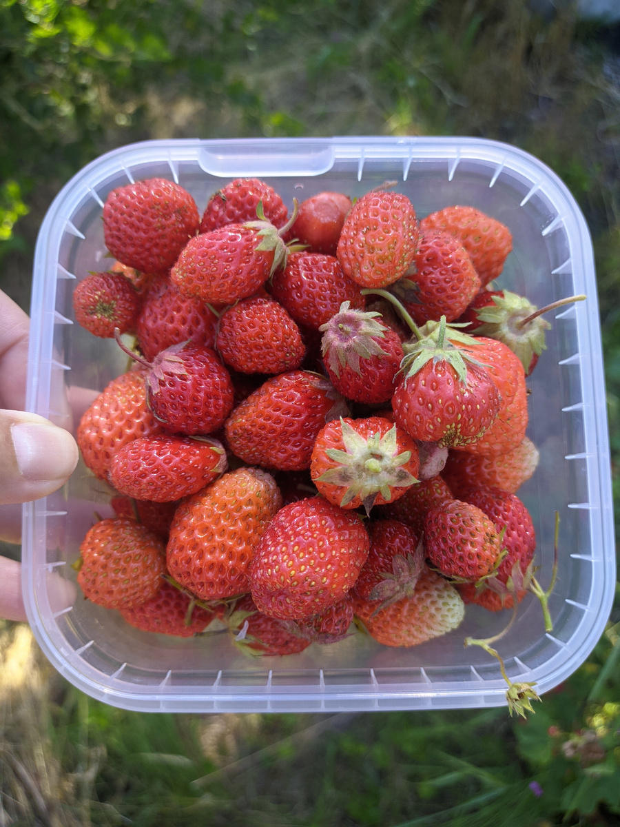 С самого утра рванули на дачу. На ближайшую неделю обещают +30 градусов и без осадков. Надо было срочно спасать то, что всё-таки вопреки всему выросло 🤭. Нас дождалась клубничка: Немного, но своя - это приятно 🤗. Шуня разделила с нами трапезу: Собрала очередной "чайный букет": Каждый раз собираю букет из трав и оставляю его сушиться в доме. На этот раз в букет вошли: - мата; - мелисса; - душица; - зверобой; - лист смородины; - лист вишни; - лист малины. Надеюсь, к следующей пятнице будут готова сухая смесь 😋. Расцветает первая розочка: После того, как в прошлый раз разгромила муравейник, который муравьи решили организовать на моей гвоздичке 🤦🏻♀️, она ожила: Расцвели вот такие цветочки - никогда не знала, как они называются: Календула, которая уже третий год сама себя выращивает, начинает цвести: Микро молодило, которое дома было стопроцентными задохликами, стало вот таким: В состоянии микро, видимо, решили остаться перцы, томаты и огурцы - это напоминает застывшую беременность