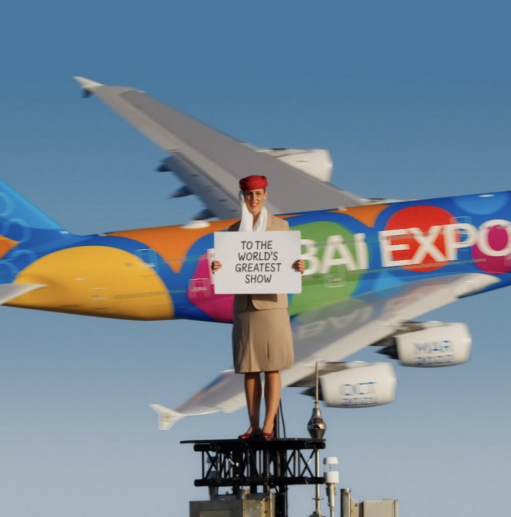 Только настоящие самолеты и никакого хромакея. В августе 2021 года Emirates выпустила рекламный ролик, в котором стюардесса в фирменной форме стоит на вершине самого высокого небоскреба в мире «Бурдж-Халифа». Полгода спустя авиакомпания решила усложнить задачу и подготовила еще более невероятное видео по случаю международной выставки Expo 2020. Идею с табличками создатели роликов позаимствовали из фильма «Реальная любовь». Держит их не обычная стюардесса, а профессиональная инструкторка по скайдайвингу Николь Смит-Людвик. Ей вместе с командой пришлось сначала подняться на 160-й этаж «Бурдж-Халифа», откуда можно было продолжить путь наверх. За час девушка добралась до вершины небоскреба, где ее закрепили на специальной металлической платформе с помощью карабинов Гораздо сложнее оказалось реализовать задумку с пролетающим на фоне самолетом. Полет проходил на малой высоте — лишь 828 м — и на очень низкой скорости, 145 узлов, в то время как обычно она составляет 480 узлов. Это позволило