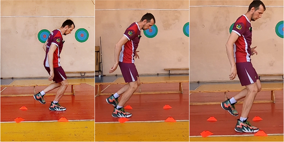 И вот дорогие друзья мы и подошли к нашей второй фазе. Как быстро пролетели предыдущие три недели. И так, у нас есть изменения в упражнениях и есть упражнения из предыдущей фазы, но в усложнённом варианте. Пожалуй начну рассказывать. Цель: без изменений Интенсивность 160-170 уд. в мин. Отдых: 1 минута между подходами. Вместо последней тренировки на третей неделе выполняем промежуточный замер. 1. Упражнение "4 точки" (на одной ноге) - 2 подхода по 10 повторений (не забываем что сначала делаем два подхода на одной ноге и только потом переходим ко второй) 2. Прыжки на голеностопах (на одной ноге) - 2 подхода по 75 повторений (условия как и в первом упражнении) 3. Прыжок колени к груди - 2 подхода по 15 повторений 4. Прыжок из стороны в сторону с низкой тумбы - 2 подхода по 10 повторений (каждое касание земли будет считаться за одно повторение, а тумба не должна превышать 45 см.) 5. Прыжок в длину из положение стоя - 2 подхода по 5 повторений. 6. Прыжок вверх из приседа - 2 подхода по 15
