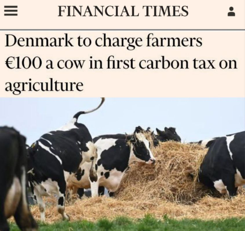 Euronews: "В Дании в защиту окружающей среды принят закон о налоге с фермеров с каждой головы крупного рогатого скота, а так же с лошадей. Налог будет составлять €100 за одну голову в год из-за выделений парниковых газов"