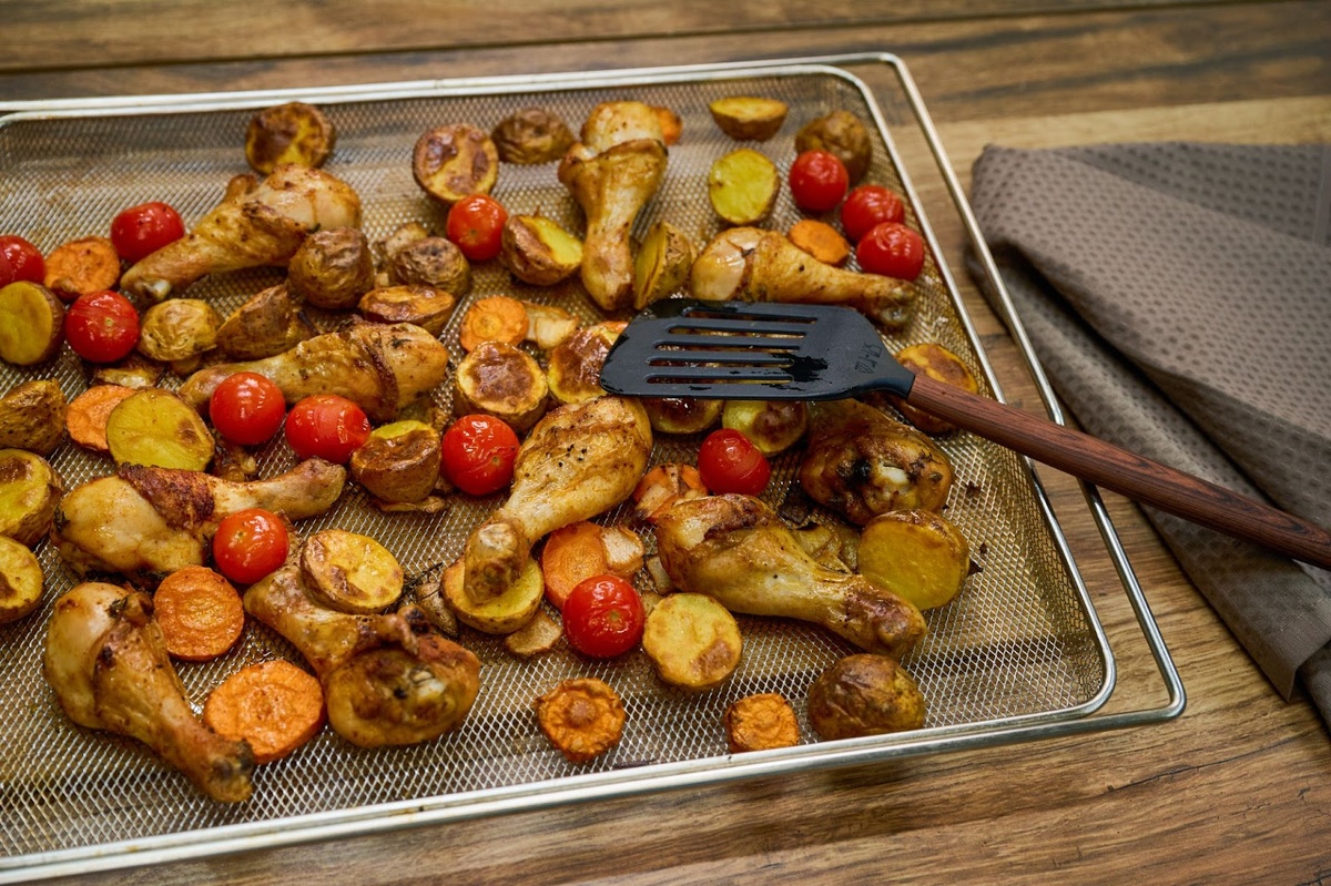Сегодня поделимся рецептами ужинов в духовом шкафу от бренд-шефов VÄRD — Антона и Екатерины. В процессе будем использовать духовой шкаф VON564B с особым покрытием ColdPyro®. После готовки его внутренняя поверхность шкафа и противни легко очищаются благодаря этому покрытию. Читайте статью до конца, чтобы узнать больше! Сыр ломаем в сотейник и заливаем сливки. На среднем огне греем смесь до полного растворения сыра. Если получается слишком густо, добавляем воды. Ньокки варим 4 минуты в кипящей воде. Затем перекладываем их в сито, слегка поливаем оливковым маслом и перемешиваем. 1. Вырезку зачищаем, солим и перчим. 2. На сковороде обжариваем на высоком огне до появления характерной коричневой корочки и перекладываем на противень. 3. Ставим мясо в духовой шкаф и устанавливаем в него термощуп на температуру 53°C. Сам духовой шкаф работает на режиме с конвекцией на 140°C 4. Как только мясо достигнет 53°C, сразу достаём и оставляем на 15 минут. С термощупом в духовом шкафу VÄRD прибор самост