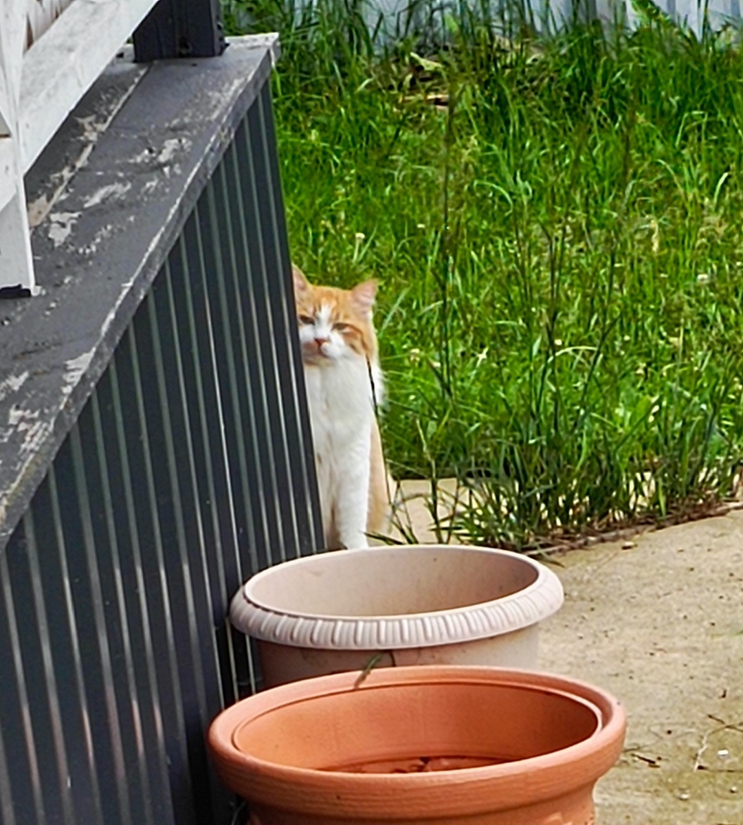 Дней 5 назад мама не плотно закрыла дверь в дом. Коты воспользовались этой ситуацией и все трои пошли дышать свежим воздухом. Андрюха заметил, что дверь открыта, сказал мужу, тот вышел на крыльцо. Маркиз там и сидел и сразу пошел на руки, Ласка выскочила из под калитки и пулей метнулась в дом сама. А третьего - родительского, не видать. Кинула сообщение в чат поселка. Через пару дней одна из соседок написала, что видела его у ворот на въезде в поселок. Пошли искать - нет его. Потом она мне стала писать, что видит его там каждое утро, когда гуляет с собакой. Из-за собаки не пытается поймать. Ходили, искали, нет заразы! Прошлой ночью слышу шорох на террасе. Открываю дверь - сидит. Зазываю домой, резких движений не делаю, просто держу дверь открытой и спокойным голосом зову, он недотрога, своеобразный котик. Посидел в проеме и ушел. Обулась, пошла вокруг дома, в час ночи, блин. Смотрю, под крыльцом мелькнул рыжий хвост. Зову, не идет. Вынесла ему поесть, еще чуточку подождала и ушла. Ут