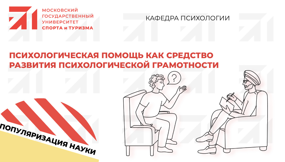 В предыдущих выпусках в рамках рубрики #популяризациянауки мы подчеркнули необходимость развивать современному человеку комплексную и актуальную способность, именуемую психологической грамотностью. Также мы рассмотрели основные компоненты естественного развития психологической грамотности современного человека. Вместе с тем зачастую люди сталкиваются с такими трудными жизненными ситуациями, разрешение которых возможно только с помощью специалиста-психолога. В связи с этим в данном выпуске мы поговорим о культуре обращения за психологической помощью, как одной из составляющих фактора специализированного развития психологической грамотности. Во-первых, необходимо понять, что собой представляет психологическая помощь. В самом простом понимании психологическая помощь – это профессиональная помощь психолога, которая направлена на: 1) развитие психологической грамотности обратившегося за помощью; 2) повышение социально-психологической компетентности обратившегося; 3) преодоление трудностей и