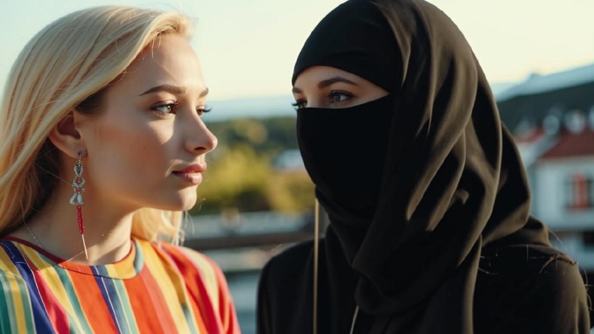 Дама в светской одежде напала на женщину в чадре и попыталась сорвать с неё мусульманское одеяние.