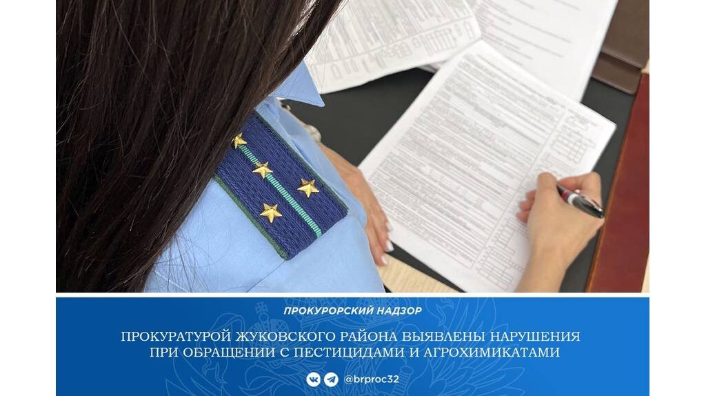 В Жуковском муниципальном округе местное сельхозпредприятие в апреле и мае четыре раза обрабатывало поля пестицидами и агрохимикатами. При этом о проводимых работах организация не оповестила население, в том числе владельцев пасек. Нарушения выявила прокурорская проверка. Кроме того, на предприятии не велся журнал регистрации работ по применению пестицидов и агрохимикатов. Надзорное ведомство внесло представление в руководителю организации. Также инициировано привлечение должностного лица к административной ответственности. Жуковское сельхозпредприятие накажут за обработку полей пестицидами без оповещения жителей