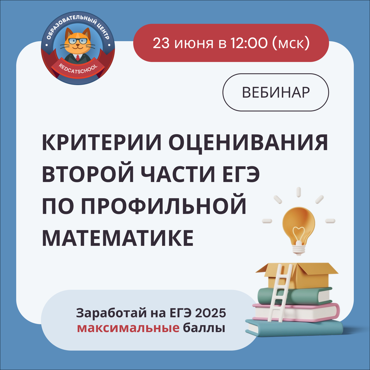 Готовы повысить свои баллы на ЕГЭ 2025 по профильной математике? 📍 REDCATSCHOOL приглашает вас принять участие в бесплатном вебинаре, посвященном критериям оценивания второй части ЕГЭ по профильной математике. На вебинаре обсудим: - Ключевые ошибки, за которые снимают баллы; - Применение критериев проверки старшим экспертом ЕГЭ на примере реальных заданий; - Как проверяющие выставляют баллы за конкретные задания; - Снимают ли баллы за оформление. 🔗Ссылка для регистрации: https://redcat.school/reg_veb 📝Не упустите возможность разобраться в критериях оценивания, чтобы уверенно решать задания второй части и заработать максимальные баллы📈 Первые два вебинара из серии «Подготовка к ЕГЭ 2025»: - Стратегии подготовки к сдаче ЕГЭ по профильной математике в 2025 году (структура экзамена, полезные сборники и , конечно же,необходимый план подготовки). https://youtu.be/hcE5lM--RhM - Разбор реальных вариантов ЕГЭ по профильной математике(разобрали вариант ЕГЭ 2024,сравнили структуру, прорешали