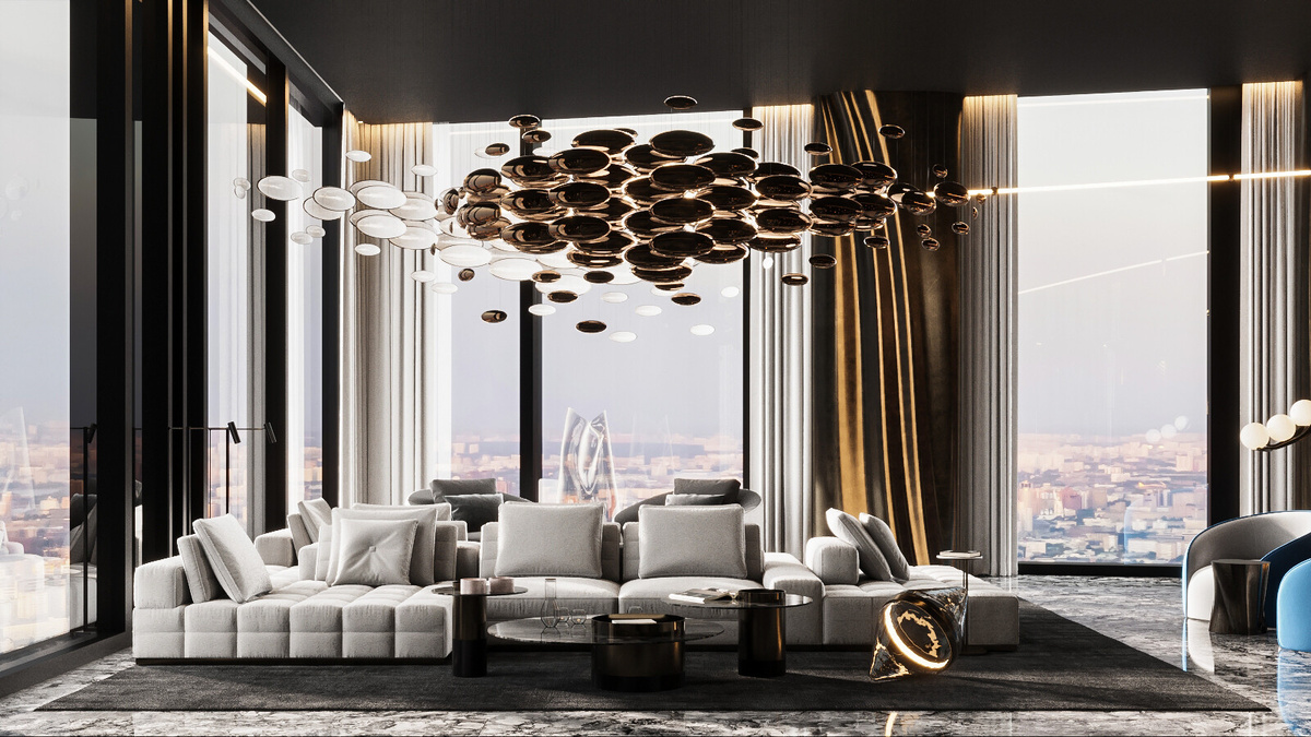 ⛲ Архитектура: ЖК состоит из трех 42-этажных зданий, выдержанных в изысканом футуристичном стиле. Башни стоят на общем пьедестале, где обустроены бассейны, а на крыше — террасы с зелеными зонами. В апартаментах со 2-го по 28-й этаж предусмотрены от одной до трех спален, а в апартаментах с 29-го по 40-й этаж — от трех до пяти.