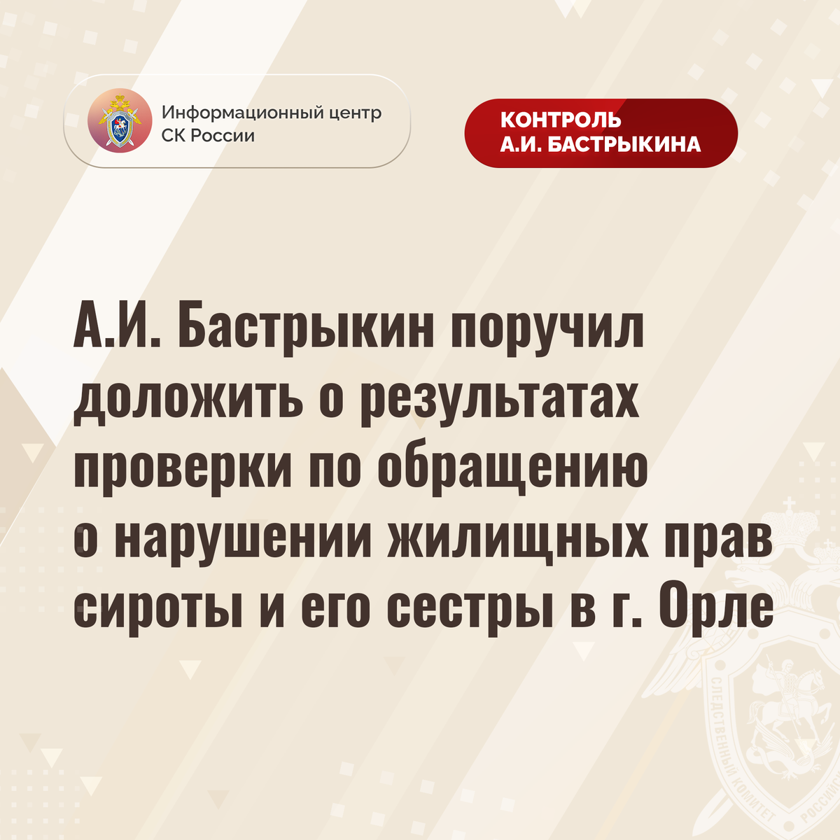 А.И. Бастрыкин поручил доложить о результатах проверки по обращению о нарушении жилищных прав сироты и его сестры в г. Орле