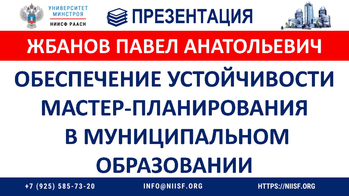 ПРЕЗЕНТАЦИЯ Модератор: Береговских Анна Николаевна – Руководитель Института территориального планирования «Град» «Обеспечение устойчивости мастер-планирования в муниципальном образовании» Жбанов Павел Анатольевич - Заместитель Президента РААСН, проректор МАРХИ, профессор