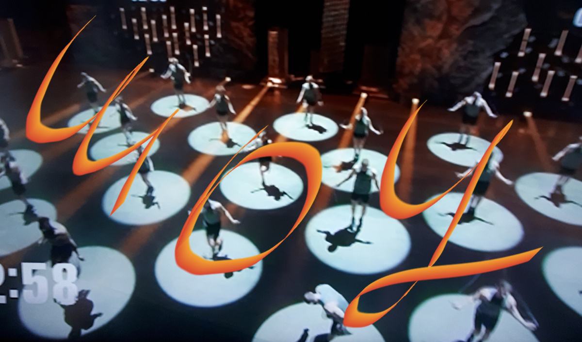 Кто-то не разобравшись, скажет, подумаешь детская забава. А вы попробуйте. На скакалках есть счётчики, запинаться можно, но количество прыжков должно стремиться к максимуму. Время три минуты и есть три этапа. В первом вылетел Юшкевич, Комаров. Тяжеловесам прыгать сложно. Я болела за любимца моего Кузнецова. Но во втором этапе у него забились икры, он вылетел.