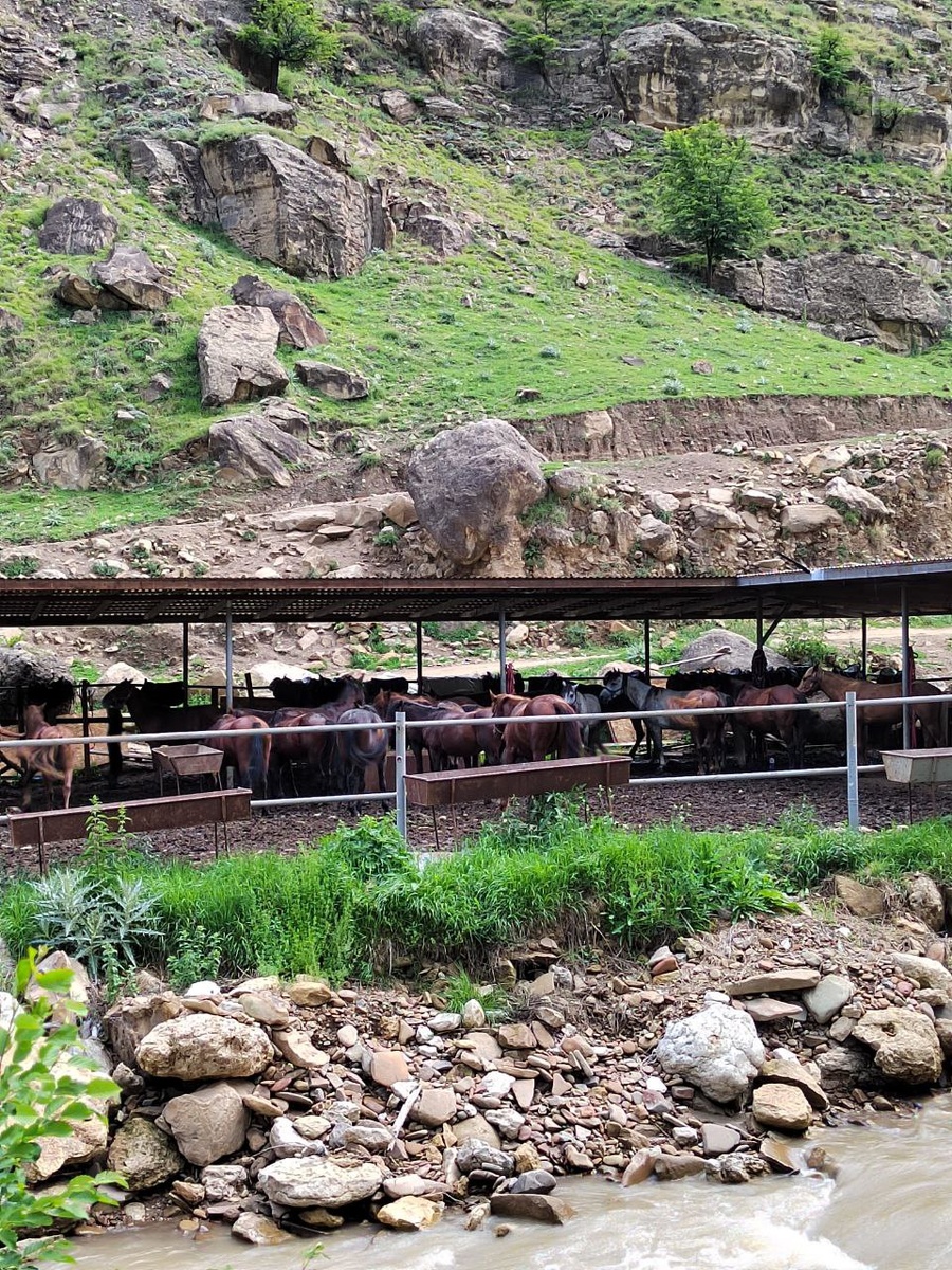 Доброго времени суток, мои дорогие друзья и гости канала. Как же быстро летит время, а на отдыхе вдвойне быстрее. Вот и наступил уже третий день нашего тура. С утра, как обычно встали, привели себя в порядок и пошли на завтрак. Утром нас обычно кормили какой-нибудь кашей, я её не ела и яичницей с сосиской, чай, кофе, конфеты, вкусняшки. Позавтракали и поехали в город-призраков, он же древний город Гамсутль, он же дагестанский Мачу - Пикчу. Доехали мы до места, немного пофоткались, собрались с силами, потому что нам пришлось 1500 метров подниматься в гору. Из них метров 500 - 700 нас довезли на буханках, а потом в путь-дорожку. Было очень тяжело, хотя шли медленно и большую часть по лесу в тени, но всё же. Многие эту часть поднимались на лошадях, уж не знаю платно или нет, но скорее всего да. Многие говорили, что подниматься около 1,5 - 2 часов, но мы дошли за 50 минут, это, скорее всего, с учётом подъёма на машинах. Наверху была уже жуткая жара, я нашла одну из комнат из тре