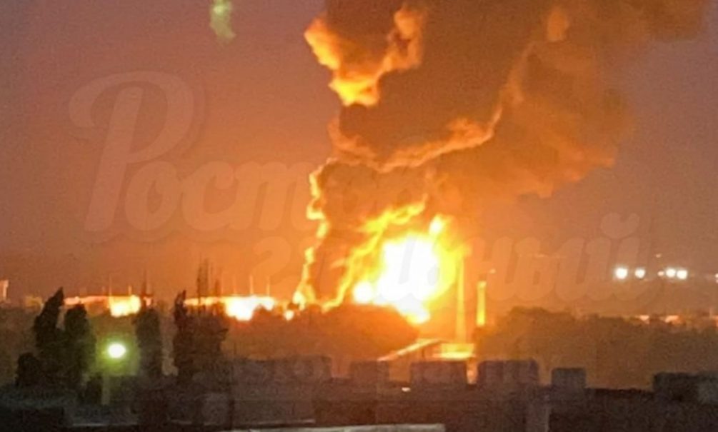 В ростовском Азове после атаки дрона загорелись резервуары с нефтепродуктами
