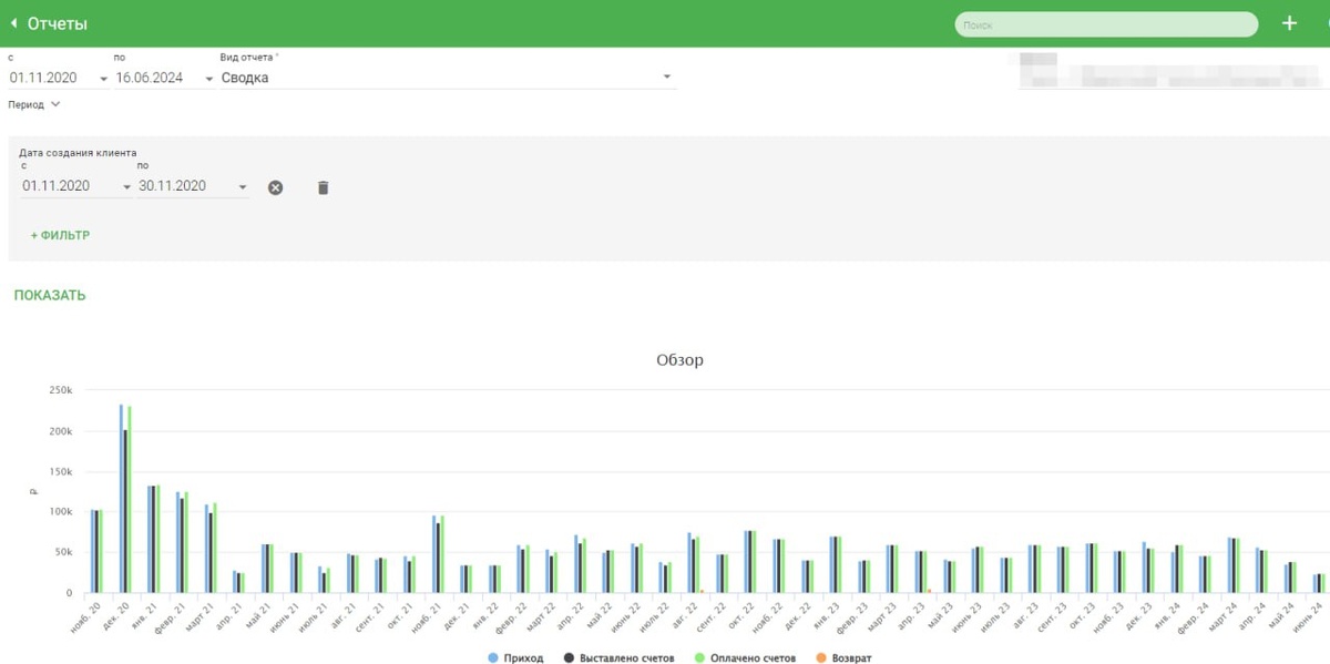 Выручка с этих клиентов составила за весь период (с 2020 по 2024 год) составила - 2 769 078 руб.
