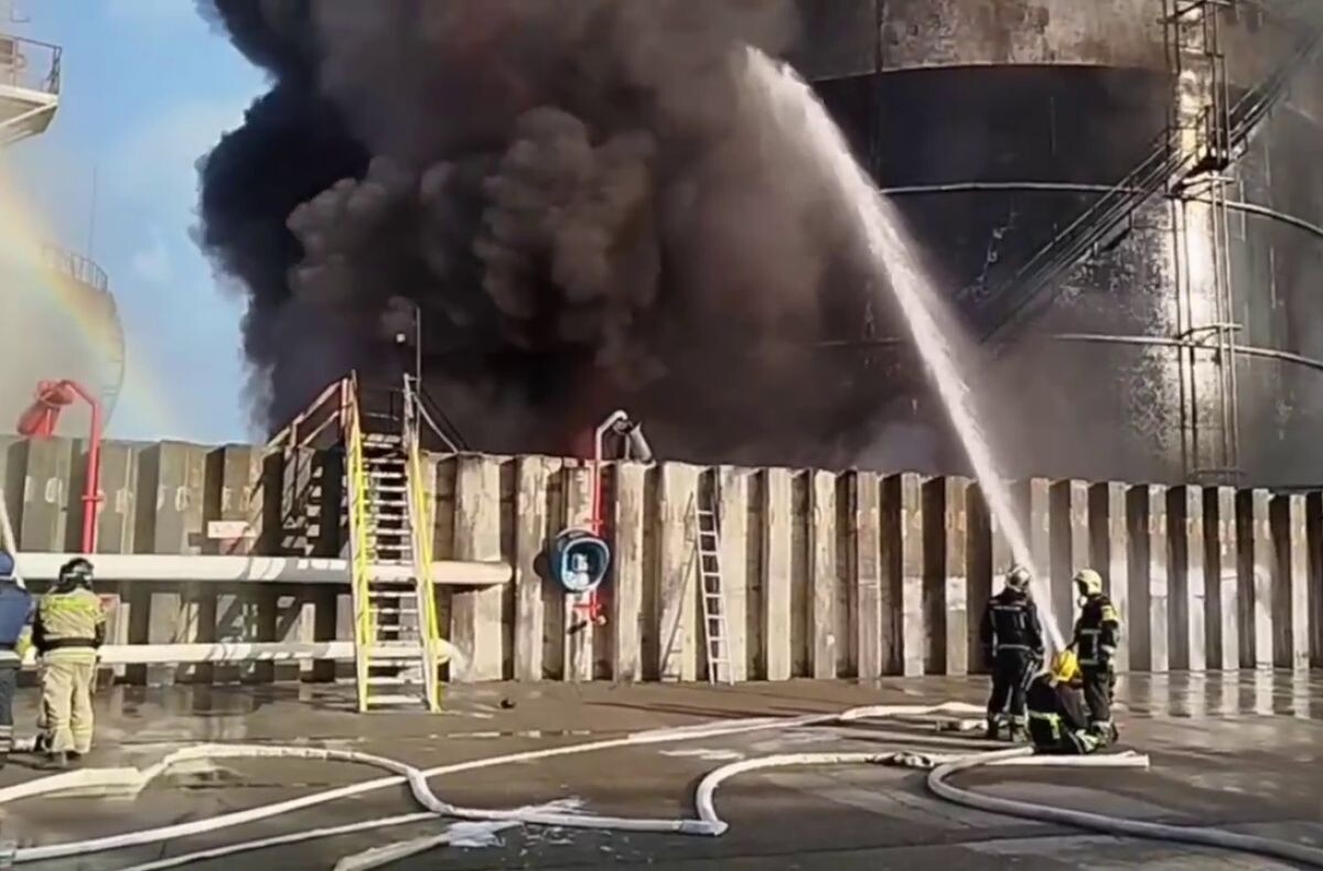В Азове Ростовской области горит резервуар с нефтепродуктами, площадь пожара достигла 3,2 тысячи куб м. Об этом сообщает региональное МЧС. В ликвидации пожара участвуют более 200 спасателей, 39 единиц техники, включая пожарный поезд. Причиной пожара стала атака беспилотника. Произошло ночью 18 июня. Данную информацию подтверждает губернатор области Василий Голубев. По его словам, жертв нет, угрозы распространения пожара на другие объекты нет, превышения предельно допустимых концентраций загрязняющих веществ не установлено. На месте работают специалисты Роспотребнадзора по контролю за состоянием воздуха.