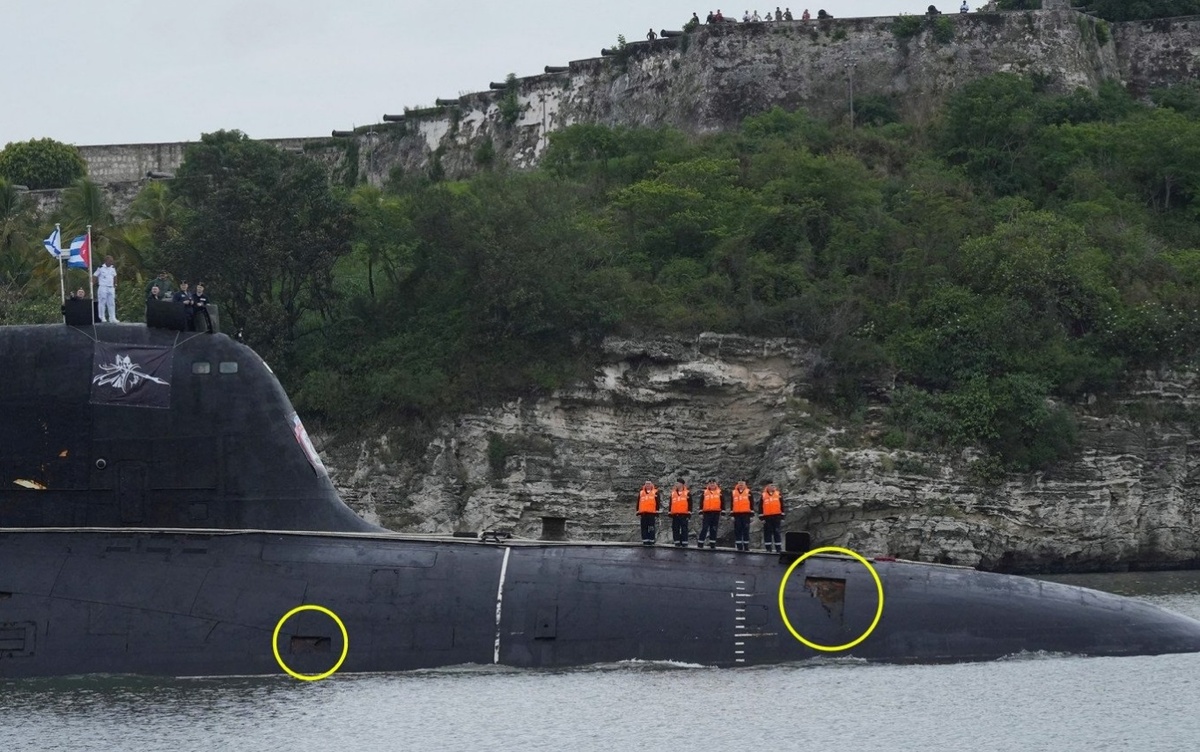 В Сети засветилась фотография нашей АПЛ, находящейся с дружественным на Кубе, где видно, что оторвана часть шумоизолирующей обшивки лодки. И всё! Что тут началось среди буйных и помешанных демократичных и цивилизованных. Смотрим. ДРП, автор блога Российская подводная лодка «Архангельск» начала разваливаться во время пути на Кубу. Есть сомнения, вернется ли он обратно в Россию. Некоторые полагают, что лучшим вариантом действий было бы объявить чрезвычайную ситуацию и отправиться в ближайший порт во Флориде, чтобы дезертировать... Джон Тернер