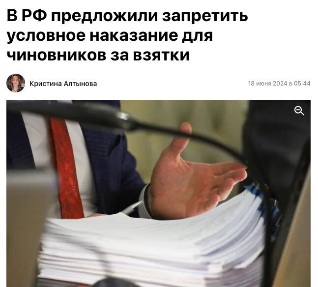 В РФ предложили запретить условное наказание для чиновников за взятки