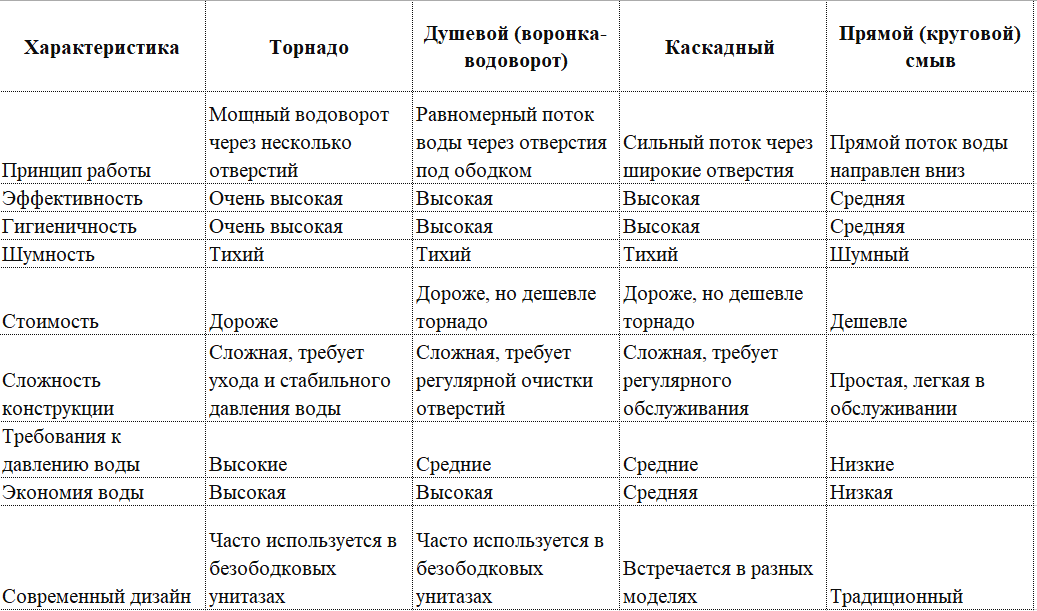 - Прямой (душевой) смыв: Бюджетный вариант для тех, кто ищет простоту и доступность, готов мириться с шумностью и большим расходом воды.