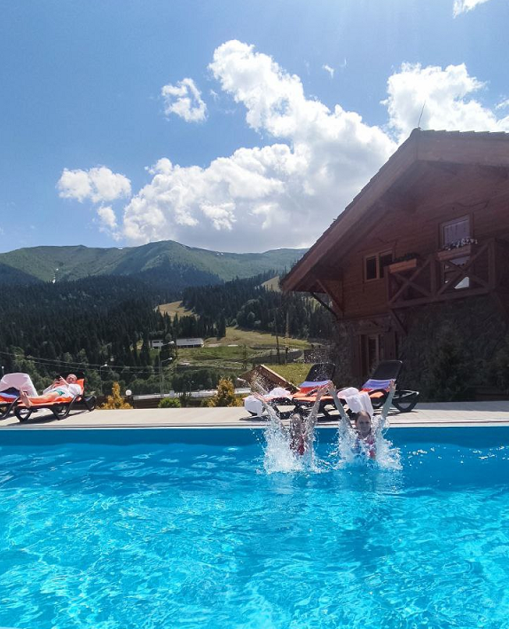 24 июня. Сегодня Релакс. Спали до победного. Потом сюрпризом для детей был бассейн. Собрала вещи и сообщила что едем в горы. – неееееет!! С бассиками тут не очень, но можно попасть при хороших отелях. Даже с финской сауной нашли. За день пребывания в бассейне, с 2-3 саунами мы отдали 10 тыр. Погрели свои усталые косточки. Заслужили. Сегодня прям жаришка. Первый день одели шорты и сандали. В центре поселка прям пекло. У нас в лесу всегда прохлада. 2ой вечер не идёт дождь. На прогноз погоды тут не рассчитывают. По прогнозу +15 и грозы. По факту жара, а над горами тучи. Тут нет комаров, за все дни видели одного. И клещей тут не бывает. Только ежи, кошки и собаки. Алеша Попович, Илья Муромец, Добрыня Никитич. 🔥 Дети с первого дня мечтали о лошадях. Но мать упорно вела их в горы 😂 Мечты сбываются, Архыз. Я никогда не сидела на лошади, дети раза 3 наверно. Последний раз в прошлом году одни в седле с прогулкой по лесу. Наверно всё в детстве мечтают о лошади. 🙈 Моего зовут Мамлюк) Детей при