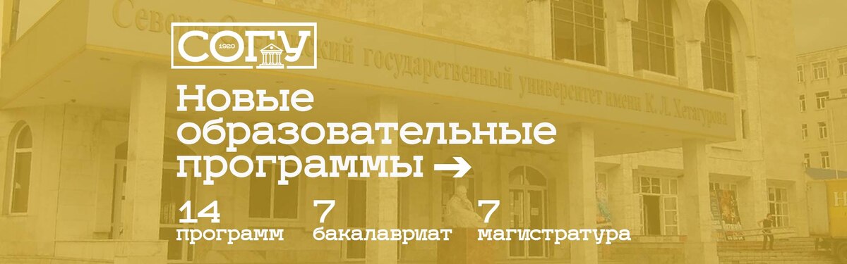 С 1 сентября 2024 года в СОГУ им. К.Л. Хетагурова начнется обучение по 14 новым образовательным программам. В частности, откроются 7 новых направлений подготовки бакалавриата. 19.03.03 Продукты питания животного происхождения, очная форма обучения. Психолого-педагогический факультет: 44.03.03 Специальное (дефектологическое) образование, профиль «Логопедия», очная форма обучения; 44.03.03 Специальное (дефектологическое) образование, профиль «Дефектология», заочная форма обучения; 44.03.05 Педагогическое образование (с двумя профилями подготовки), профили «Дошкольное образование. Дополнительное образование», заочная форма обучения; 44.03.05 Педагогическое образование (с двумя профилями подготовки), профили «Начальное образование. Психология образования», очная форма обучения. 44.03.05 Педагогическое образование (с двумя профилями подготовки), профили «Русский язык и литература. Основы медиакоммуникации», очная форма обучения. 44.03.05 Педагогическое образование (с двумя профилями подгото