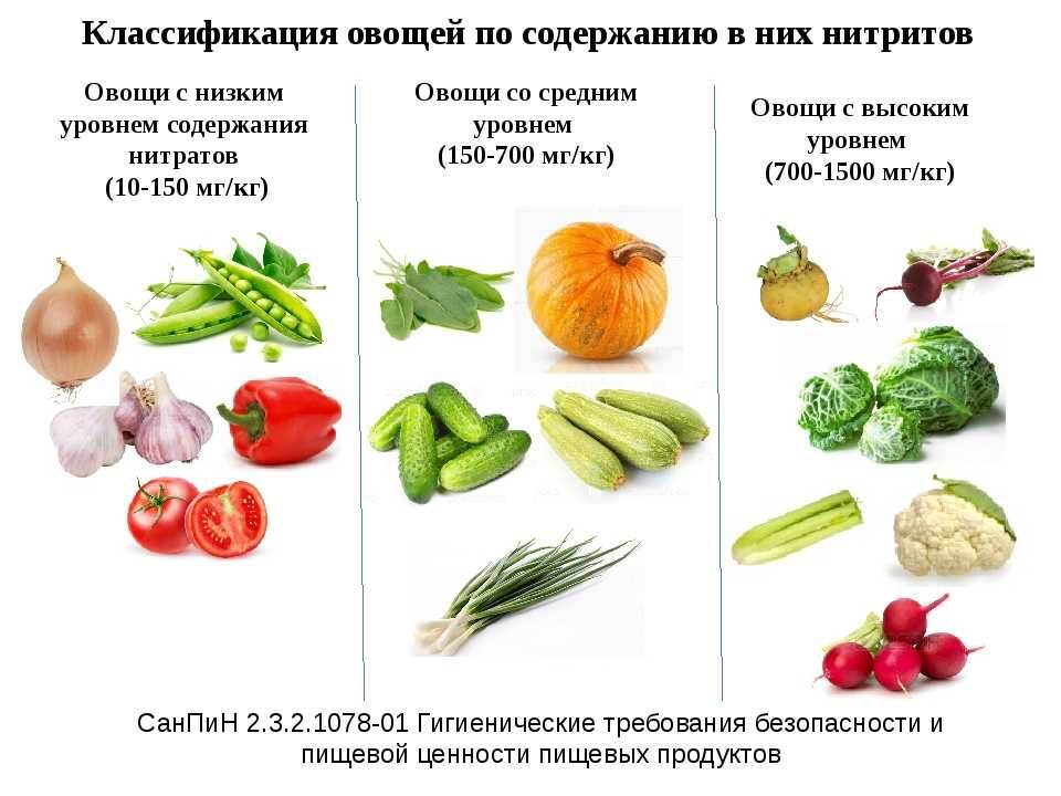 Что такое нитраты? Нитраты – это соли азотной кислоты, соединения азота и кислорода, широко распространены в природе. Они всегда есть в любых растениях – даже тех, которые никто не удобрял. Это обязательный элемент обмена веществ. Растения берут нитраты из почвы, потому что им нужен азот для построения биомассы. Но у производителей сельскохозяйственных культур тут есть соблазн: многие из них начинают расти гораздо быстрее, если дать им больше нитратов. Нитраты могут навредить человеку, если их поступает в организм слишком много. Тело превращает нитраты в нитриты, обладающие токсическим действием и мешающие транспортировке кислорода кровью. Главным источником нитратов является наша еда. Установлено, что около 60 — 80% нитратов к нам поступает с овощами и зеленью, 20 — 30% — попадает с водой и остальные проценты нитратов — с хлебом, мясными, рыбными, молочными продуктами, с консервами и другими видами пищи. По содержанию нитратов на 1 кг: · высокое (до 5000 мг): вся салатная зелень, ли